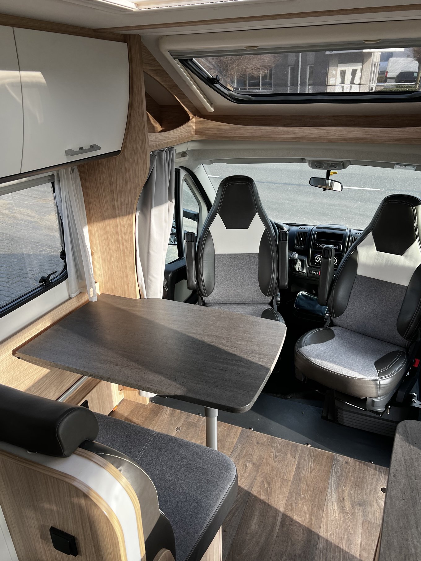 Een groot voordeel van deze camper is de volledig vlakke vloer waardoor struikelen door kleine hoogteverschillen niet mogelijk is.