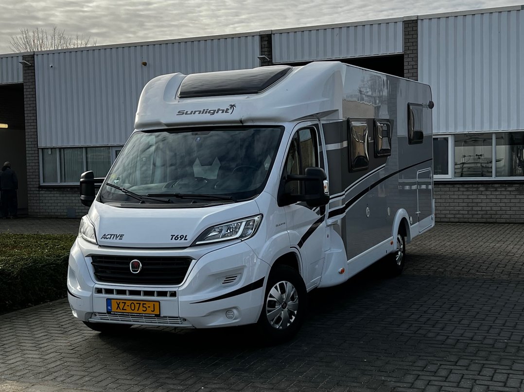 Camper 14 van onze verhuurvloot is een Fiat Ducato 2.3 Multijet 131 PK van bouwjaar 2019 met een Sunlight T69 Active Halfintegraal opbouw en een 6-traps semi-automaat.