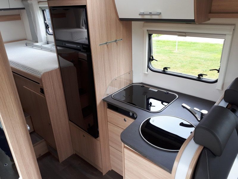 Deze camper heeft een zeer grote koelkast met een aparte deur voor het vriesvak. De koelkast werkt tijdens het rijden op de startaccu, wanneer je op een camping of camperplaats over 230V beschikt gebruikt de koelkast 230V en wanneer je geparkeerd staat werkt de koelkast op gas. Uiteraard moet je in het laatste geval zorgen dat je de gasfles opengedraaid hebt.
