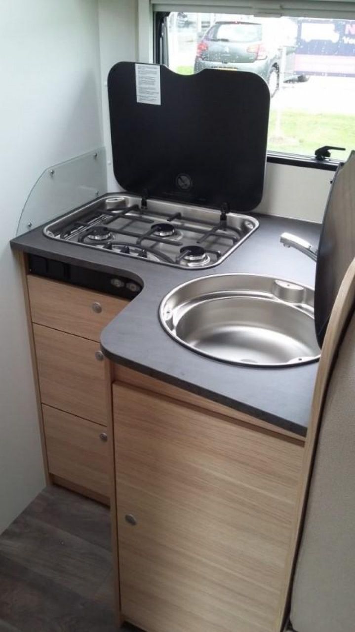 Deze camper heeft een zeer grote koelkast met een aparte deur voor het vriesvak. De koelkast werkt tijdens het rijden op de startaccu, wanneer je op een camping of camperplaats over 230V beschikt gebruikt de koelkast 230V en wanneer je geparkeerd staat werkt de koelkast op gas. Uiteraard moet je in het laatste geval zorgen dat je de gasfles opengedraaid hebt.