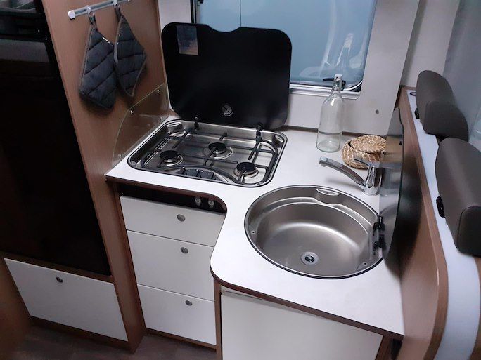 U kunt deze camper huren en beschikt dan over een prachtige 4-persoons camper met losse bedden in de lengterichting achterin. Deze 4-persoons camper is heeft een hefbed boven de dinette met een belastbaarheid van maar liefst 200 kg zodat daar makkelijk nog 2 volwassenen of kinderen kunnen slapen.